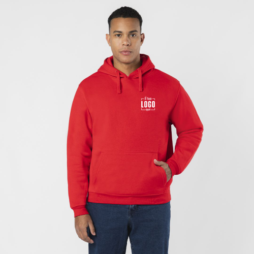 Felpata internamente in poliestere ed esterno 100% cotone per una migliore stampabilità. Etichetta taglia tessuta al collo ed etichetta laterale strappabile con logo, composizione e istruzioni di lavaggio.
