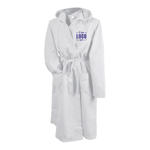 Accappatoio in microfibra di poliestere con il suo design elegante e funzionale, questo accappatoio è perfetto anche come regalo, grazie alla pratica confezione in sacchetto coordinato che ne esalta l'aspetto.