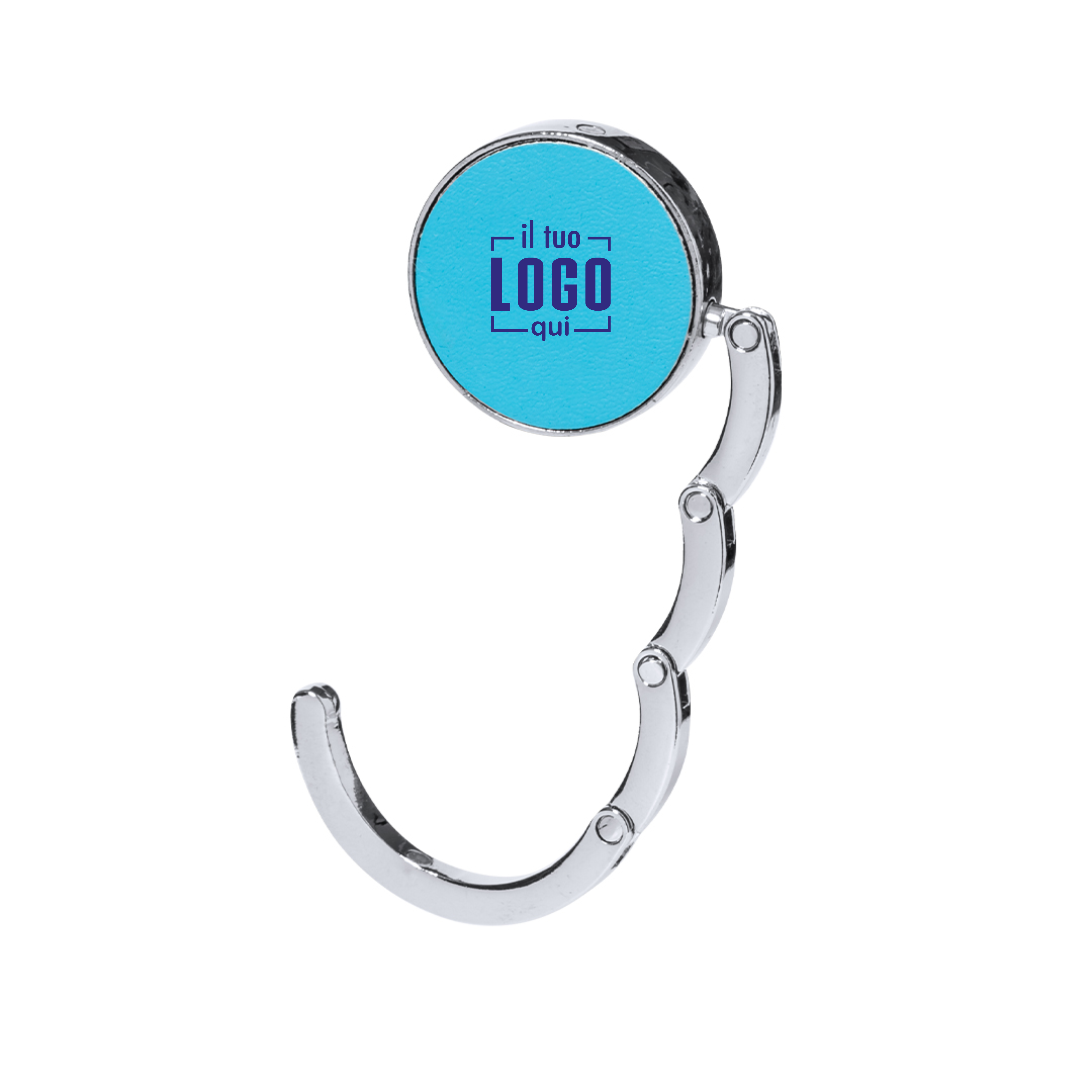 Appendi borsa pieghevole in metallo con elegante corona in PU dai colori vivaci. Pratico e compatto, si ripiega facilmente per il trasporto in borsa. Presentato singolarmente in sacchettino nero con interno fustellato, ideale come accessorio funzionale e stiloso per ogni occasione.