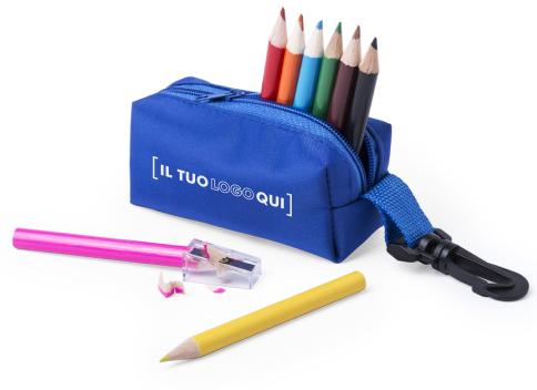 Pratico astuccio in poliestere 420D con chiusura a zip e moschettone girevole per un facile trasporto. Disponibile in una gamma di colori vivaci, include 8 matite colorate con corpo rotondo e finitura lucida, più un temperamatite abbinato. Un set completo e colorato, perfetto per scuole, eventi e attività promozionali.