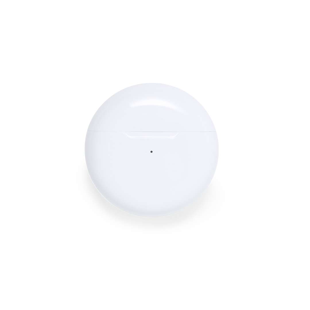 Cuffie auricolari Bluetooth® 5.3 con funzione vivavoce. Dal design ergonomico, includono un pulsante di controllo touch integrato nell'auricolare, con base di ricarica coordinata. Batteria integrata da 200 mAh e presentate in una scatola individuale dal design in kraft. Manuale di istruzioni in spagnolo e inglese.