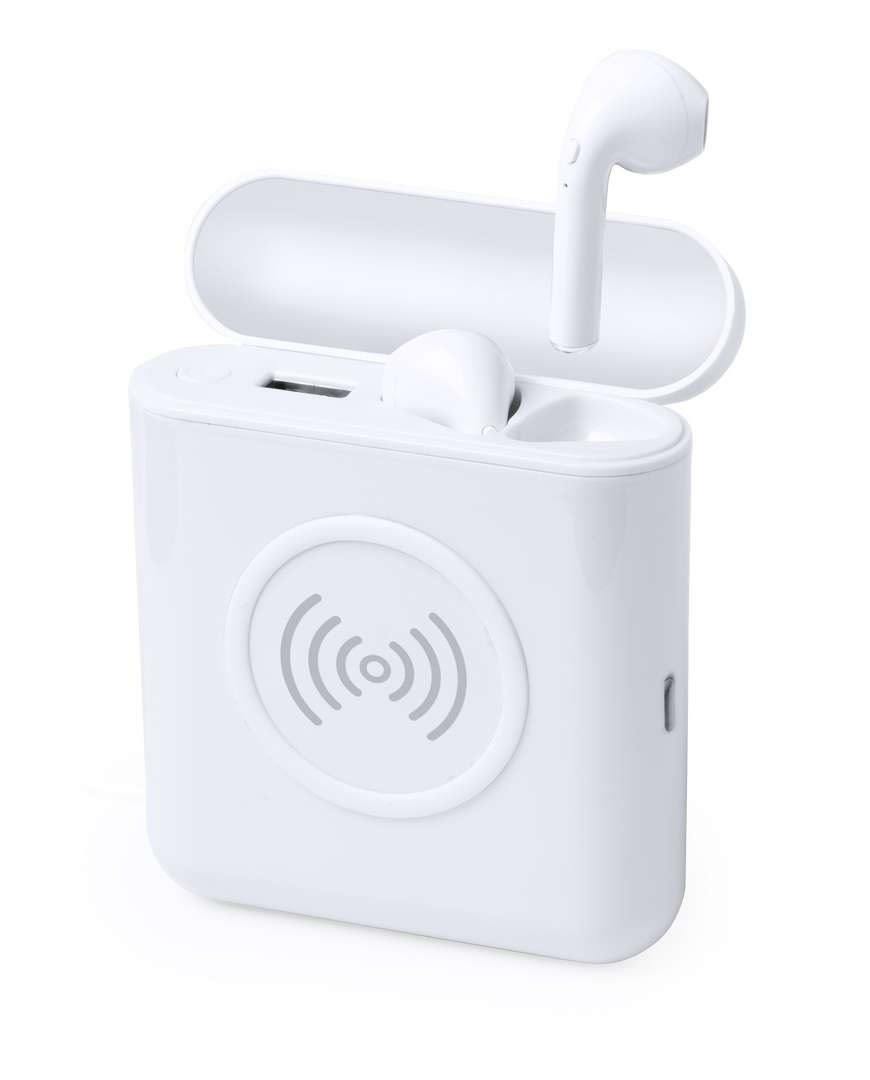 Cuffie in-ear con batteria ausiliaria esterna e ricarica wireless. Cuffie Bluetooth® 4.2 di colore bianco elegante, con comandi integrati e funzione vivavoce. Base di ricarica abbinata con batteria ausiliaria esterna wireless o cablata da 5.200 mAh e connessione di ingresso Type-C. Ricaricabile tramite porta USB - cavo incluso - e base con coperchio incernierato. Presentato in un'attraente scatola di design. Le capacità indicate su tutte le nostre batterie ausiliarie esterne sono reali e comprendono tutte batterie di grado A e non riciclate, con una durata di almeno 500 cicli di carica e conformi alle normative CE. Inoltre, sono prodotte secondo gli standard RoHS e in conformità ai seguenti requisiti di sicurezza: Sistema di protezione da sovraccarico del power bank. Sistema di protezione dalla scarica completa per una maggiore durata del power bank. Sistema di blocco per evitare cortocircuiti.