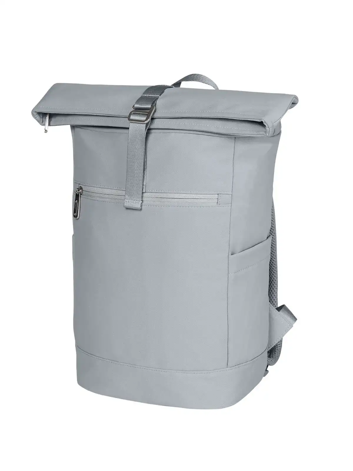 100% poliestere 290D. Zaino roll-top con manico, scomparto principale con cerniera e sistema di chiusura regolabile con fascia ad anello. Accessori metallici di alta qualità. Tasca imbottita per dispositivi elettronici, tasca anteriore con zip, due tasche a inserto laterali e fondo imbottito. Dimensioni: 25x34x14,5cm. Capacità: 10litri. Area di stampa: 14x16cm.