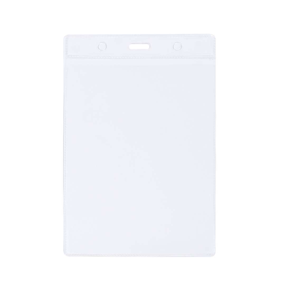 Portabadge verticale in PVC. Pratico portabadge con parte superiore rinforzata e perforazioni per il fissaggio sia centrale che laterale.