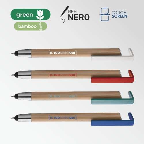 Penna bamboo con touch e supporto smartphone | Personalizzata