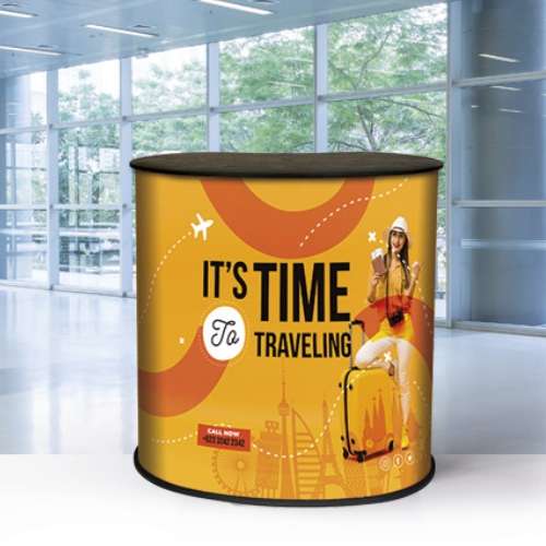Estremamente stabili e poco ingombranti per il trasporto: i nostri banconi curvi soddisfano tutti i requisiti per un materiale fieristico flessibile. Personalizzali con il tuo logo, in colori vivaci o con un efficace messaggio pubblicitario.