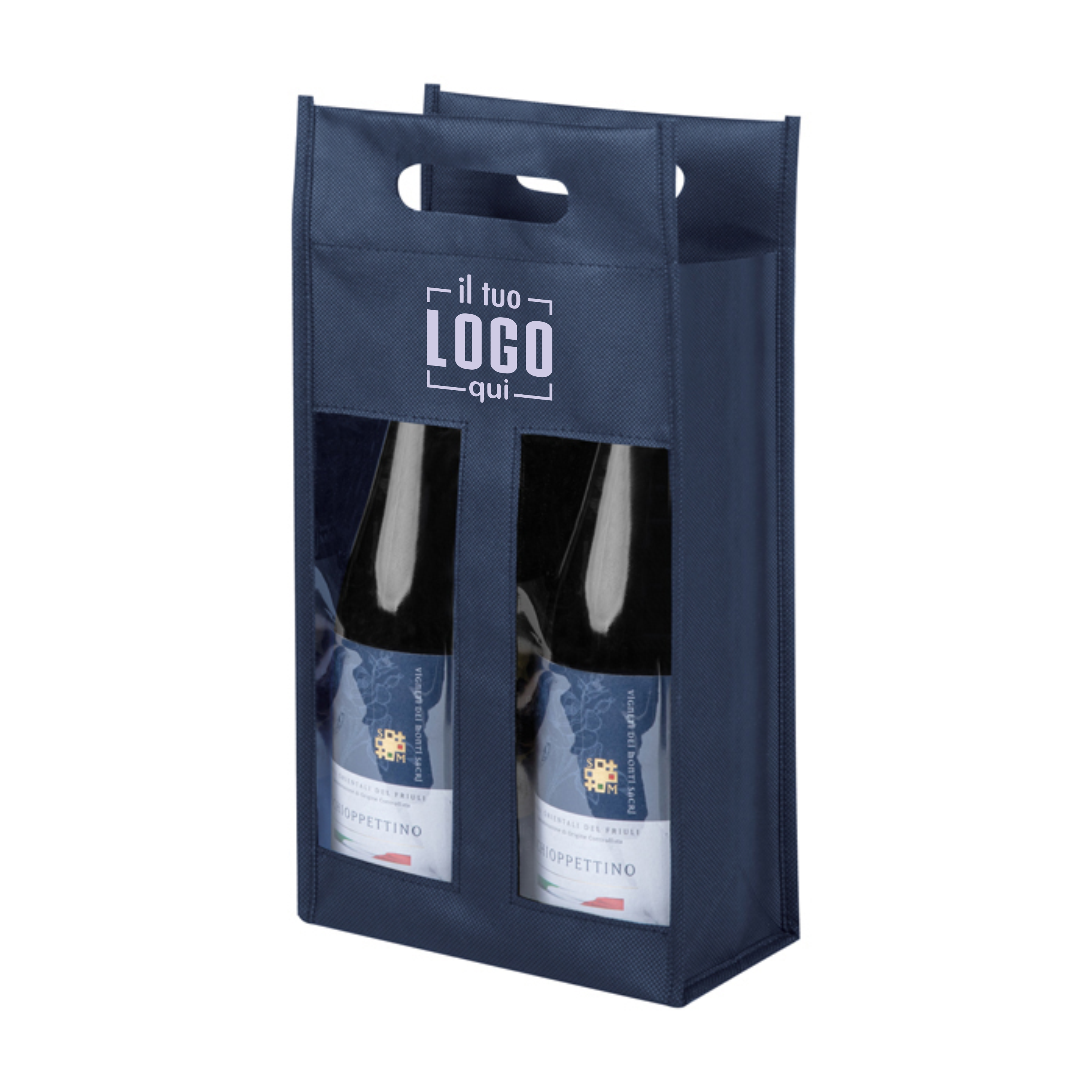 🌱 Materiale di Alta Qualità: Realizzata in TNT (tessuto non tessuto), questa borsa per vino è resistente, leggera e perfetta per il trasporto sicuro di due bottiglie di vino o altre bevande.