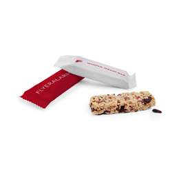 Alle fiere molti visitatori corrono da uno stand all’altro, da una riunione a un’interessate conferenza. Devono percorrere lunghe distanze, ad esempio per salutare degnamente il simpatico collaboratore, anch’egli presente in fiera, del loro cliente principale. È raro trovare il tempo per una pausa pranzo soddisfacente. Corri in aiuto dei frenetici visitatori di fiere e offri loro delle deliziose barrette di muesli integrale. Ovviamente, in una carta personalizzata con il tuo motivo grafico aziendale.squisite barrette di muesli integrale con lamponi, mirtilli e avenadimensioni incl. confezione: 12,5 x 4,6 x 1,8 cmdimensioni senza confezione: 9,5 x 3 x 1,3 cmstampa a 4/0 colori su tutta la superficiea basso contenuto di zuccheri: 100 g contengono 42,22 g di carboidrati (di cui 13,08 g di zucchero)ricche di fibre: 100 g contengono 20,89 g di fibretermine minimo di conservazione: ca. 10 mesipeso di una barretta: 35 gingredienti pressati gentilmentea partire da 500 copie Nota: per ogni ordine viene stampato un solo motivo grafico.