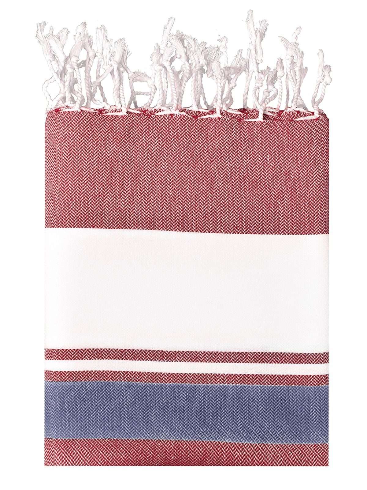 100% cotone. Telo multifunzionale per la spiaggia e varie attività all'aperto, design a strisce, bordi lunghi orlati, termina con cordini. Misura: 95 x 180 cm.