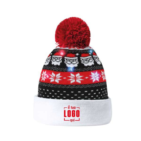 Cappello di Natale LED con Pompon – Divertente e Caldo | Personalizzato