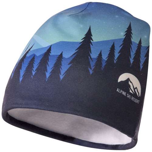 Berretto in PET riciclato con stampa in sublimazione e strato in pile. Il mix perfetto di calore e comfort, questo berretto offre infinite possibilità di personalizzazione e design vivaci, mentre la fodera in pile assicura una protezione extra contro il freddo. Per andare sulle piste da sci o passeggiare in città, questo accessorio versatile è comodo da indossare e alla moda. Disponibile in 3 misure.