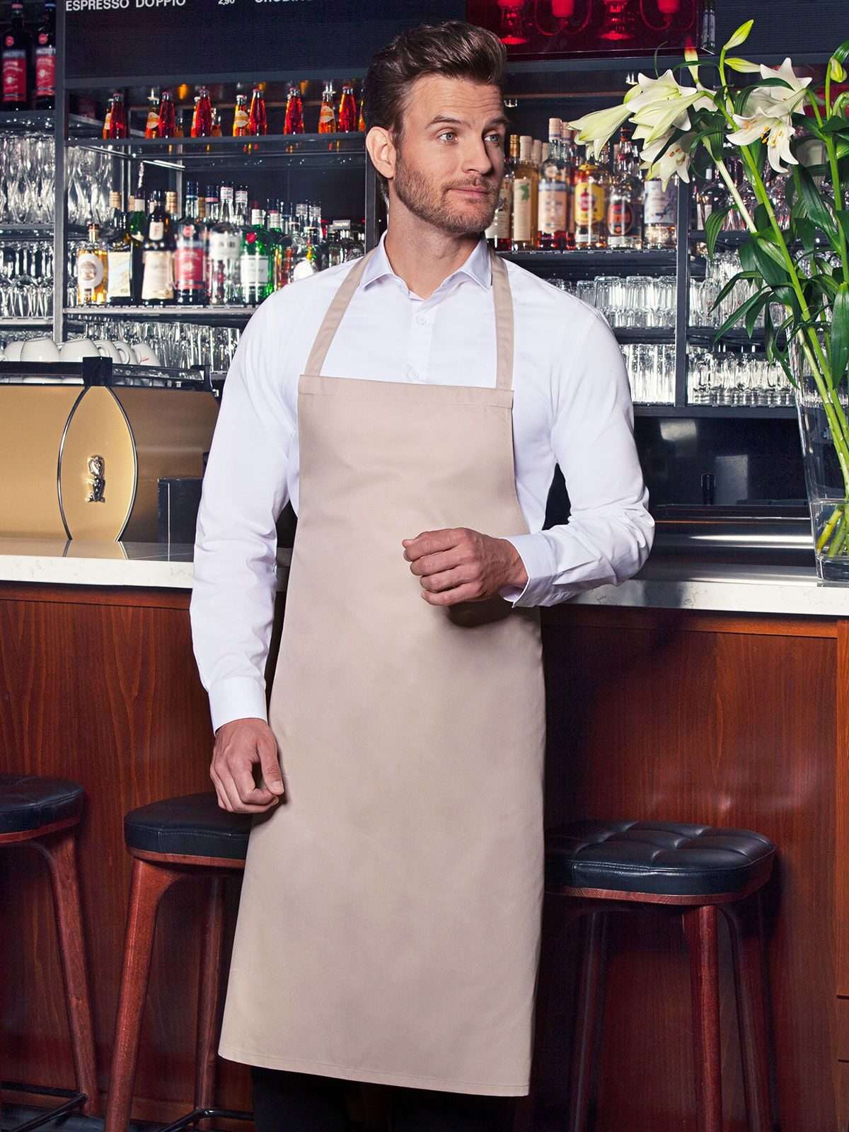 65% poliestere, 35% cotone. "Grembiule Faro, 215 g/m², cotone twill, tessuto rifinito, irrestringibile, lavabile, pratico - grembiule con pettorina con cinta dello stesso tessuto del grembiule, con cucitura rinforzata - collo orizzontale 60 cm - adatto per lavaggi industriali - disponibile in 30 colori - ""Mix and Match""