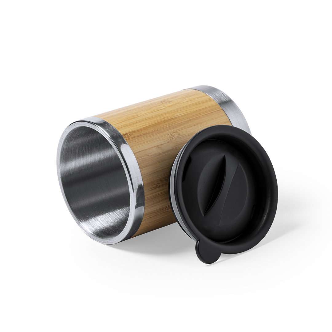 Bicchiere da tavolo con capacità di 300 ml. Corpo in una combinazione di bambù e acciaio inox a doppia parete per una migliore e più duratura conservazione della temperatura. Con un originale tappo dosatore nero ad apertura facilitata e confezionato in un'attraente scatola di eco-design.