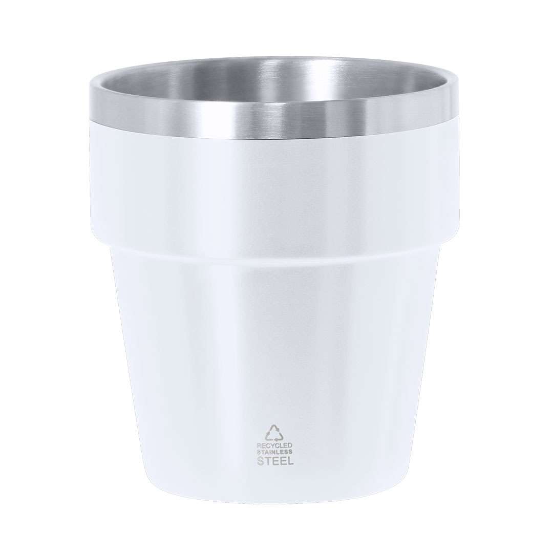 Bicchiere termico realizzato in Acciaio Inox Riciclato a doppia parete e capacità di 250 ml. Rivestimento in colore satinato e bordo e interno in acciaio satinato. Con logo Acciaio Inox Riciclato.L'acciaio è uno dei materiali più richiesti e può essere trovato quasi ovunque, da prodotti di uso quotidiano a grandi costruzioni. Con innumerevoli proprietà, tra cui la durabilità e il suo alto grado di riutilizzo, rendendolo un'alternativa molto valorizzata nelle soluzioni di sostenibilità. Adeguatamente trattato, consente di ottenere nuove risorse di utilizzo infinito.