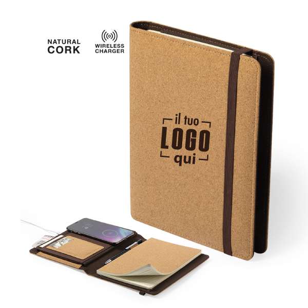 Block Notes Carica Smartphone in Sughero 17x22 Personalizzato Ideale come Gadget Aziendale