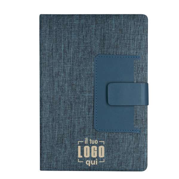 Blocco note con copertine rigide in combinazione di poliestere RPET 300D e PU. Include tasca in PU sulla copertina, ideale per carte. Con chiusura magnetica, 80 pagine a righe e segnalibro a tono.Il materiale RPET è realizzato a partire da plastica riciclata, per favorire il riutilizzo dei rifiuti plastici e contribuire alla sostenibilità del pianeta.