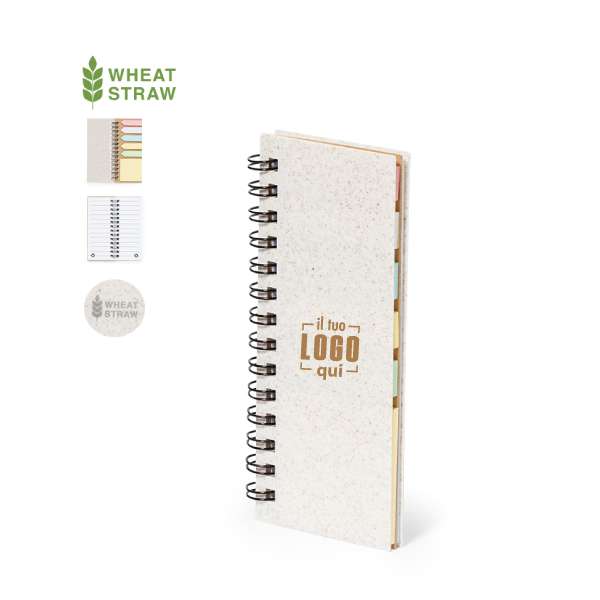 Taccuino Eco in Fibra di Grano con Fogli, Note Adesive e Raccoglitore ad Anelli Personalizzato-Sorduk