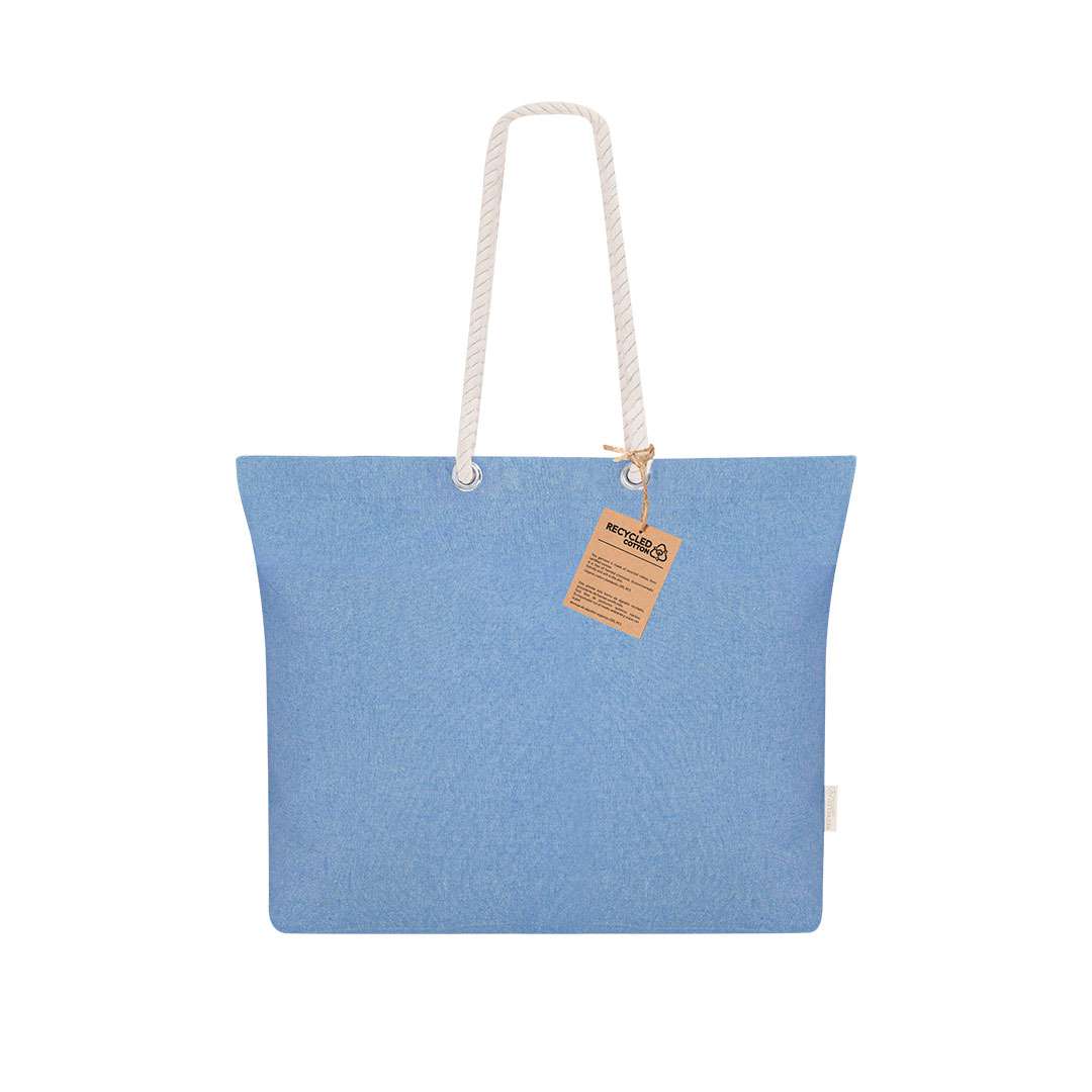 Il fondo rinforzato assicura maggiore stabilità e capacità di carico, rendendola ideale per lo shopping quotidiano, fiere, eventi o come borsa promozionale. È inclusa un’etichetta “Cotton Recycled” che valorizza l’impegno ecologico del prodotto.