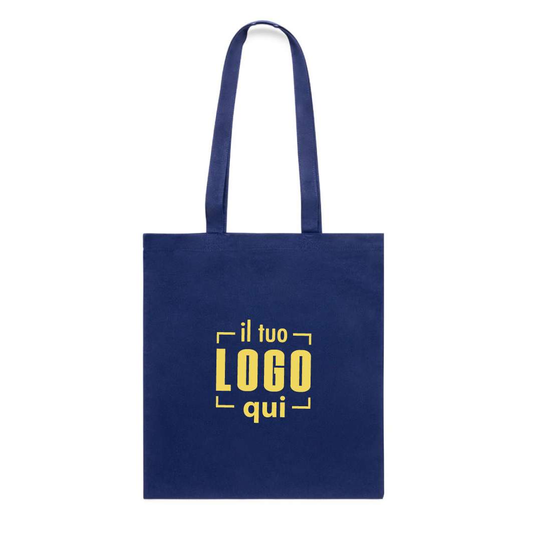 Borsa realizzata in 100% cotone 180g/m2. Finiture cucite e manici lunghi rinforzati (70 x 2,5 cm). Disponibile in un'ampia gamma di colori. Resistenza fino a 10 kg di peso.