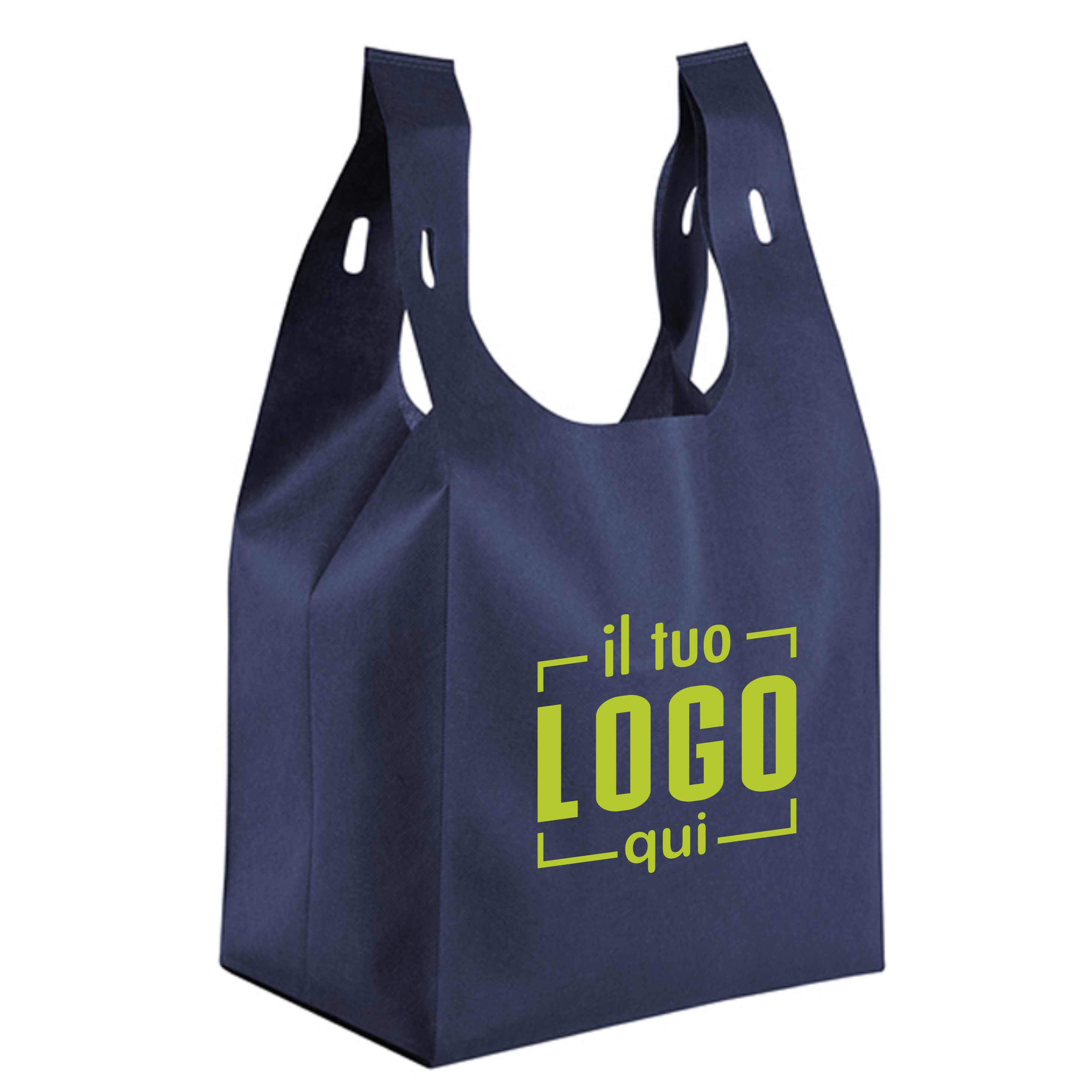 Borsa shopping in TNT leggero, progettata per eventi promozionali, fiere e utilizzo quotidiano. I manici integrati e forati rendono la borsa facile da impugnare, mentre le rifiniture termosaldate garantiscono resistenza e durata. Ideale per stampa serigrafica, con ampio spazio per loghi o messaggi pubblicitari.