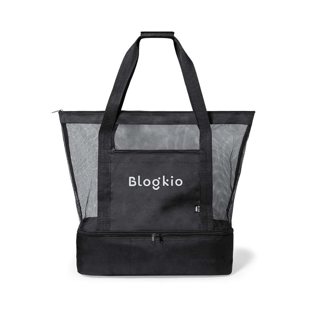Borsa in resistente poliestere 600D RPET plastica riciclata per incoraggiare il riutilizzo dei rifiuti plastici e contribuire alla sostenibilità del pianeta. Scomparto principale in rete tipo mesh, con chiusura a zip. Borsa termica integrata nella base, in resistente poliestere 600D RPET, con interno isotermico in PEVA. Maniglie di trasporto rinforzate e grande tasca frontale, con etichetta RPET.