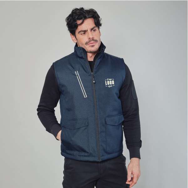 GILET IN NYLON 400 D100% polyestere con trattamentoidrorepellente- Fodera in polyestere- Imbottitura in polyestere- Piping rifrangente dietro il collo- Cerniere nastrate YKK- Una tasca sul petto con nastraturarifrangente- Due doppie tasche esterne- Tasca interna portafoglio- Cerniera centrale con tessutointerno antivento- Gancio appendiabito nel collo- Coulisse al fondo