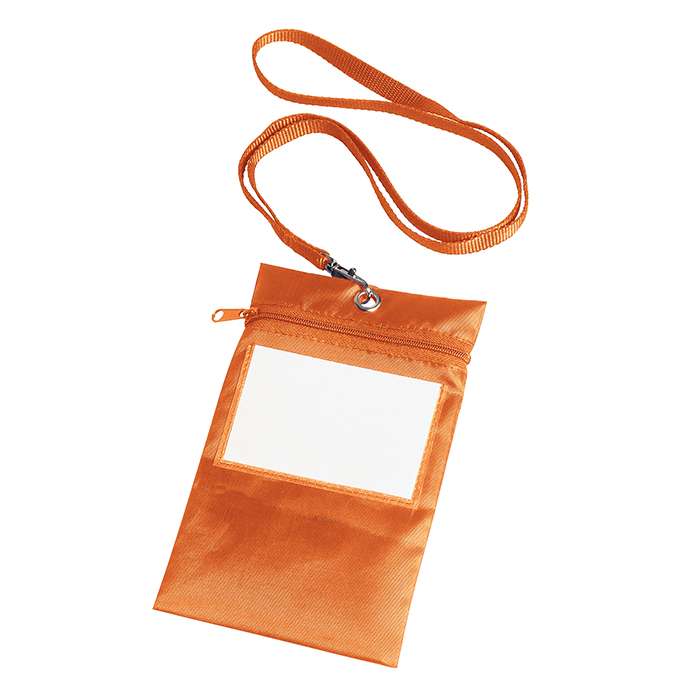 borsellino collier multiuso nylon 210D; chiusura con cerniera; occhiello in metallo; laccetto con gancio; tecnica di stampa consigliata: serigrafica -sublimatica (BI)