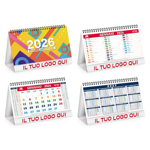 Il calendario da tavolo è un calendario compatto, pensato per essere posizionato su scrivanie, reception o banconi, facile da consultare e sempre a portata di mano.