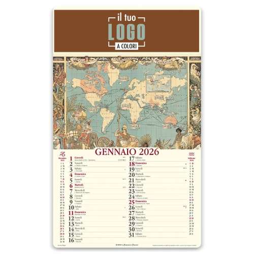Calendario Illustrato 2026 | Mensile 12 Fogli con Testata 31×10,5 cm Personalizzato | ANTICHE MAPPE