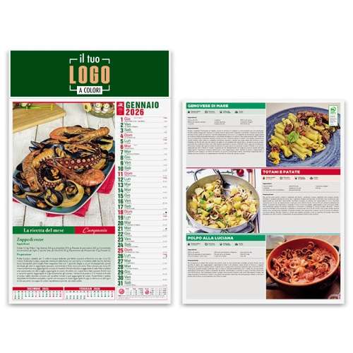 Calendario Illustrato 2026 | Testata 30×9 cm Personalizzabile | GASTRONOMIA