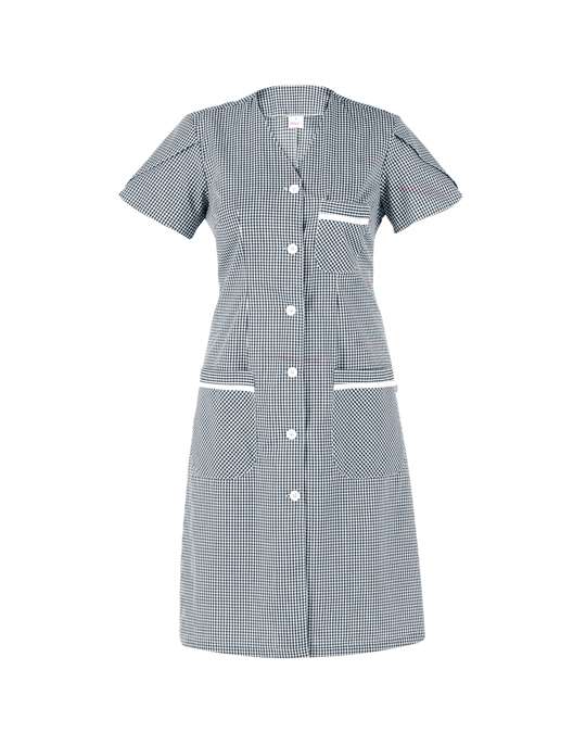 Il camice Viola è un capo dalla vestibilità Slim Fit con maniche ad aletta che consentono ampia libertà di movimento. Presenta un essenziale scollo a V, con abbottonatura centrale a sei bottoni in poliestere opaco, insieme a due tasche dallo stile geometrico sottolineate da uno sbieco bianco inserito a libro. I grembiuli Mimosa e Magnolia completano il coordinato con i Camici da donna Viola e Ortensia.