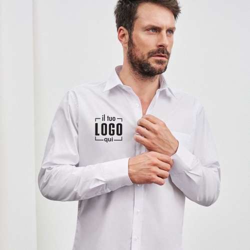 Camicia Taglio Classico da Uomo Avvitato e Taschino in Poliestere Personalizzata per Camerieri, Receptionist