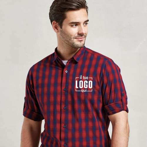 Camicia Uomo Manica Lunga Quadri Bicolore Personalizzata