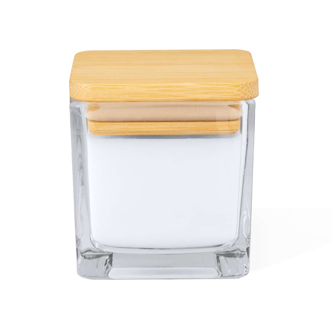 Candela profumata alla vaniglia. Viene fornita in un barattolo di vetro trasparente, di forma quadrata con coperchio in bambù. Presentata in una scatola individuale dal design kraft. Materiali come il bambù favoriscono l'uso di materie prime naturali, riducendo le emissioni inquinanti. Proviene da una pianta altamente resistente e versatile, con una crescita e una rigenerazione rapida, rappresentando un'ottima alternativa all'uso del legno tradizionale