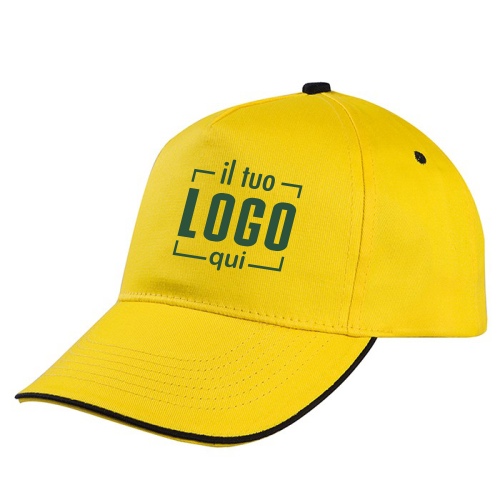 Berretto 5 Pannelli Cotone Visiera con Piping a Contrasto| Personalizzato