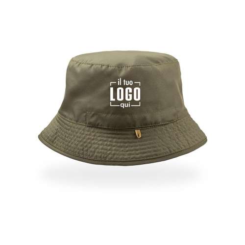 100% poliestere. Cappello in tessuto morbido modello pescatore, reversibile, senza occhielli e senza parasudore, 8 cuciture a righe sulla visiera, pieghevole e tascabile, taglia unica. Etichetta removibile.
