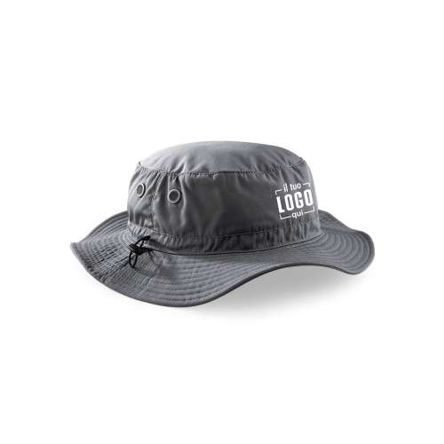 65% poliestere 35% cotone. Cappello in tessuto modello pescatore, protezione contro i raggi solari (UPF 50+), parasudore in mesh, cordino elasticizzato con stopper, taglia unica. Etichetta removibile.
