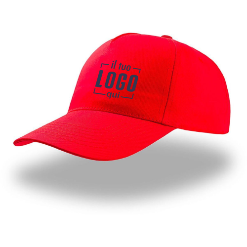 Cappellino 5 pannelli in 100% cotone, taglia unica con chiusura in velcro. Disponibile anche in versione bambino. Comodo, leggero e versatile.