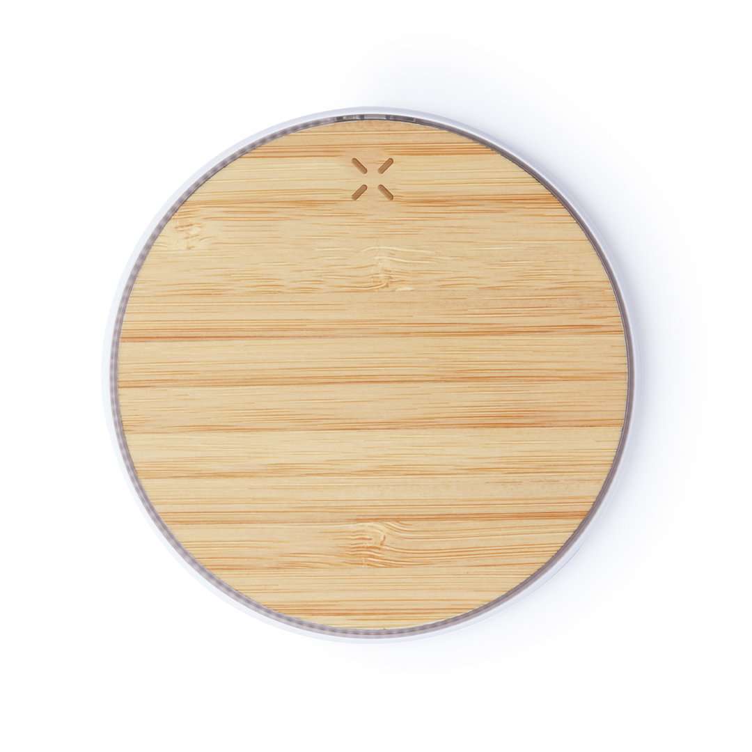 Caricabatterie wireless in linea con la natura, con base di ricarica in legno di bambù. Base antiscivolo e compatibile con i dispositivi dotati di tecnologia di ricarica wireless. Presentato in un'attraente scatola di design. Cavo USB incluso.