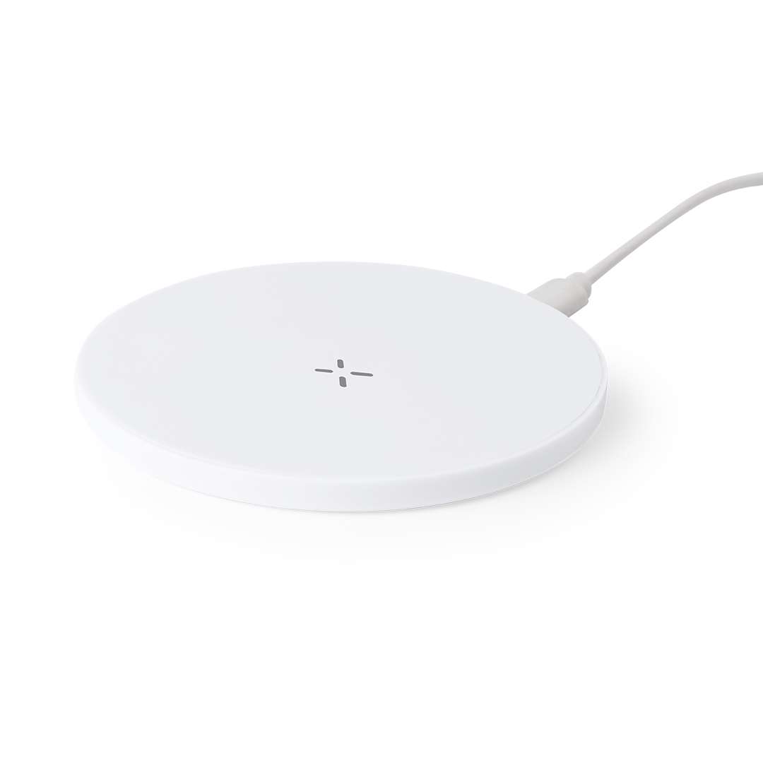 Wireless charger 15W in circular design made of RABS. Compatible with devices equipped with Qi wireless charging technology. Non-slip base, with Type C charger cable included. Presented in an individual kraft design box, with instructions manualin English and Spanish.RABS is a highly recyclable and highly resistant plastic with a multitude of applications that make of it an eco-friendly solution. With RCS certification, guaranteeing its recycled origin.Manufactured according to RoHS standards and in compliance with the following safety requirements: Overheating protection system. Over-charge protection system. Blocking system to prevent short circuits.