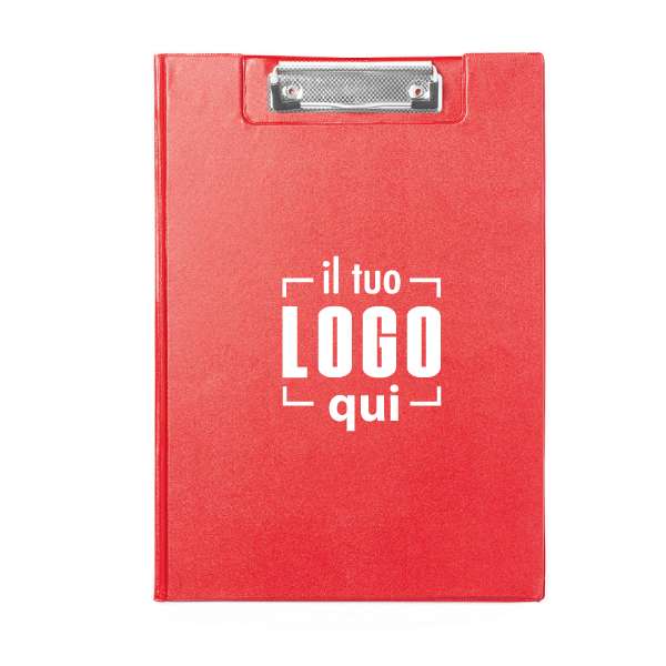 Classica cartellina con clip in vari colori e finitura in PVC morbido. Con tasca interna trasparente in PVC resistente.