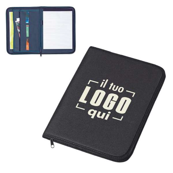 cartella sottobraccio nylon 600D; interno multitasche; blocco per appunti; chiusura con cerniera; tecnica di stampa consigliata: serigrafica - transfer
