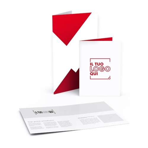 Crea cartelline personalizzate in carta patinata, lino o riciclata. Stampa fronte/retro, colori oro/argento, vernice antimicrobica opzionale. Anche da 1 esemplare.