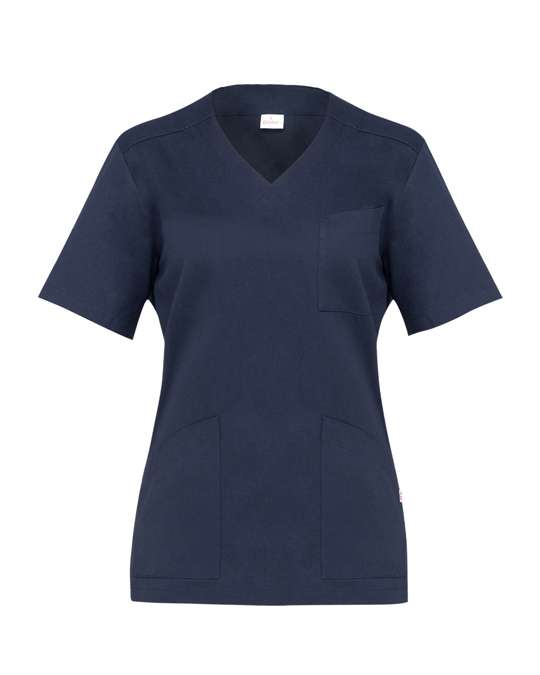 21P03K196 La casacca Milena ha le maniche corte e presenta una scollatura a V valorizzata da una fascia larga che si sovrappone sul davanti. Gli spacchi sui fianchi assicurano piena libertà di movimento. Due comode tasche laterali ed un’ampia tasca sul petto completano il capo. La casacca è realizzata in gabardina 100% cotone, un tessuto che riesce a mantenere una mano morbida pur resistendo alle alte temperature ed ai lavaggi con cloro.