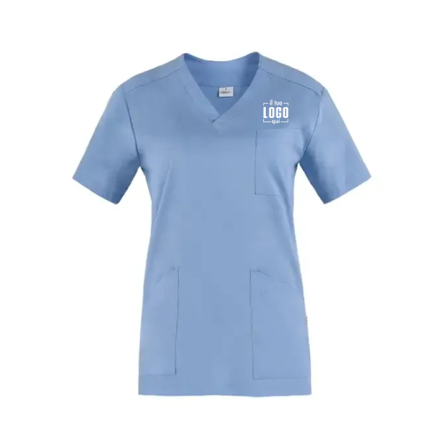 20P03K196 La casacca Milena ha le maniche corte e presenta una scollatura a V valorizzata da una fascia larga che si sovrappone sul davanti. Gli spacchi sui fianchi assicurano piena libertà di movimento. Due comode tasche laterali ed unampia tasca sul petto completano il capo. La casacca è realizzata in gabardina 100% cotone, un tessuto che riesce a mantenere una mano morbida pur resistendo alle alte temperature ed ai lavaggi con cloro.