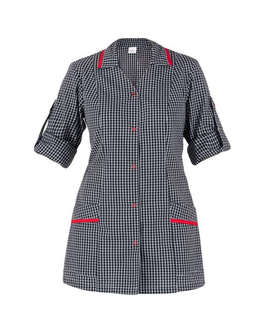 La casacca Primula è un capo evergreen per eccellenza, un articolo trasversale dal gusto pulito e dalla linea rigorosa, realizzato in un leggero poliestere cotone. Presenta una silhouette Regular Fit, accentuata dai due tagli sul davanti e sul dietro. È caratterizzata da due tasche e dal collo a camicia con sbieco a contrasto, abbottonatura con classica anellina e manica arrotolabile con alamaro interno. Primula è proposta in tre varianti: bianca con contrasti quadrettati e sbieco rosso, quadrettata con anellina e sbieco rosso, rossa con sbieco quadrettato nero. Ha la sua versione maschile nella casacca Ricky.