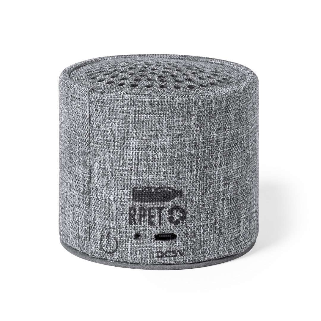 Cassa modello compatto, della linea natura e connessione Bluetooth® 5.0. Corpo in poliestere RPET, realizzato con plastica riciclata, al fine di promuovere il riutilizzo dei rifiuti plastici e aiutare la sostenibilità del pianeta. 3W di potenza, compatibile con iOS e Android. Include un cavo di ricarica micro USB e base antiscivolo. Confezionata in un'attraente scatola di eco-design. Con il distintivo RPET sull'articolo