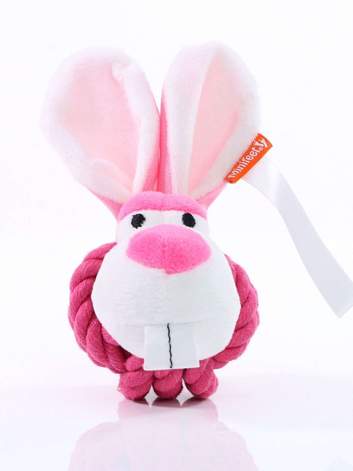 100% poliestere. Imbottitura in fibra di poliestere. Gioco per cani intrecciato a forma di coniglio. Dimensioni: 12 x 9 x 14,5 cm.
