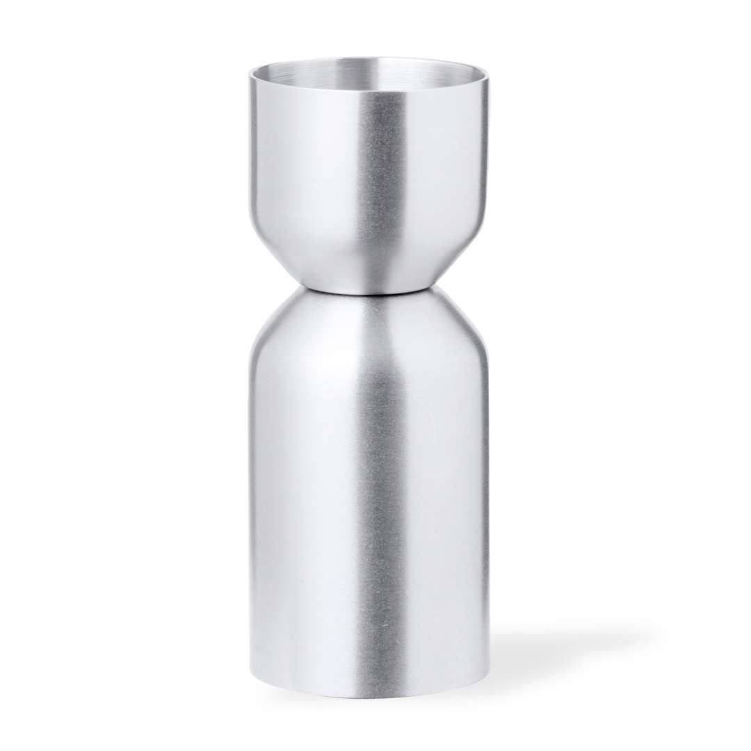 Bicchiere dosatore per bevande in acciaio inox con finitura opaca. Appositamente progettato per la stampa laser e presentato in una scatola kraft di design.