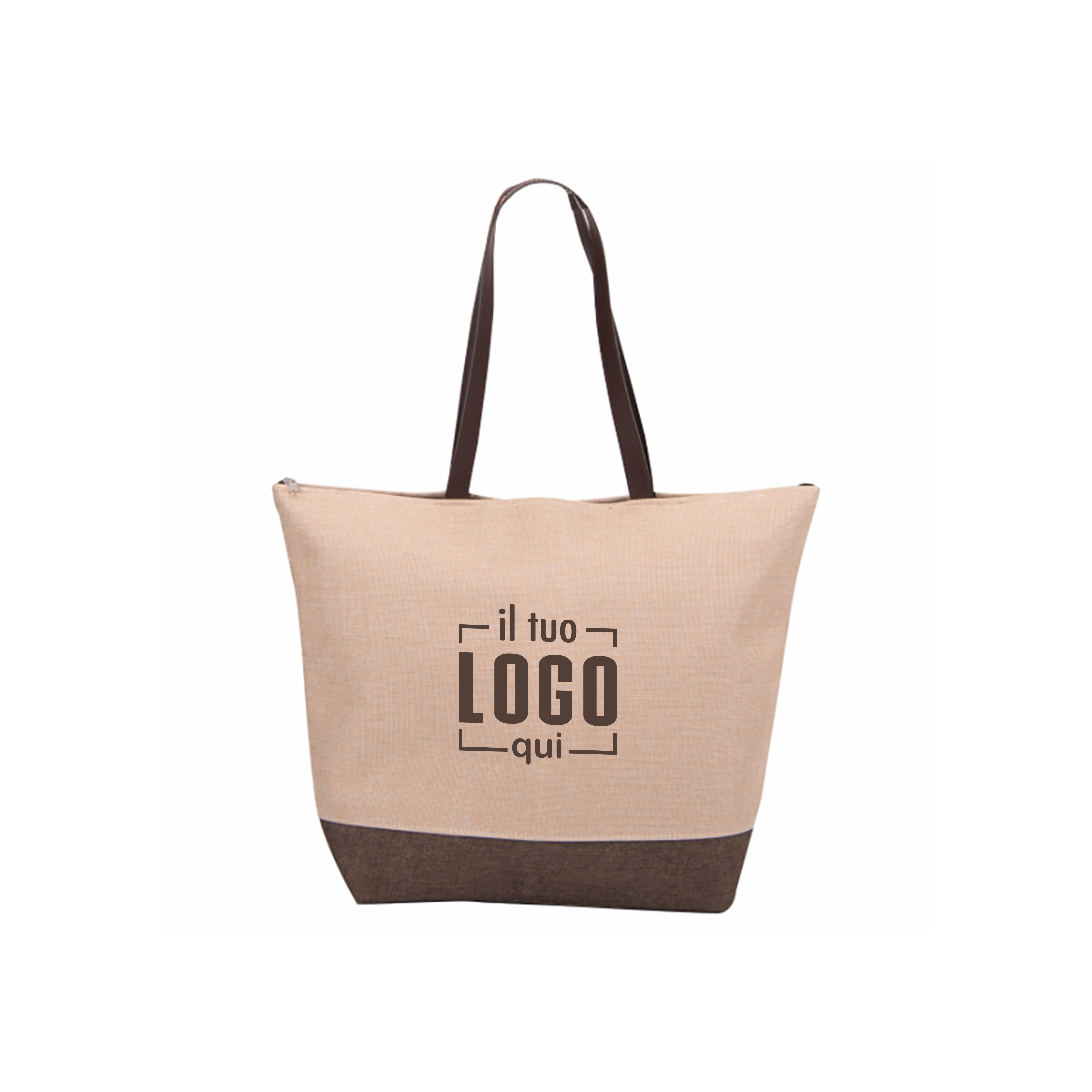 Capiente Borsa Doppio Colore con Manici Lunghi in Semilpelle Personalizzata Perfetta come Gadget Promozionale